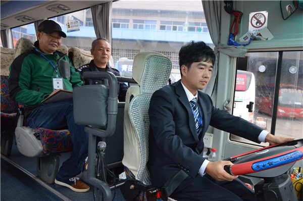 技能比武分安全駕駛常識(shí)比試和駕駛操作技能比武兩部分。安全駕駛常識(shí)比試以電腦當(dāng)場作答方式進(jìn)行,比試題目從理論考試題庫中隨機(jī)抽取。駕駛操作技能比武模擬迎接旅客上車、發(fā)車前安全承諾、途中安全駕駛和車輛回場送客等幾個(gè)環(huán)節(jié)進(jìn)行。比武邀請(qǐng)市交警支隊(duì)警官、市運(yùn)管局運(yùn)安科領(lǐng)導(dǎo)及麗汽集團(tuán)汽校管理人員擔(dān)任裁判。